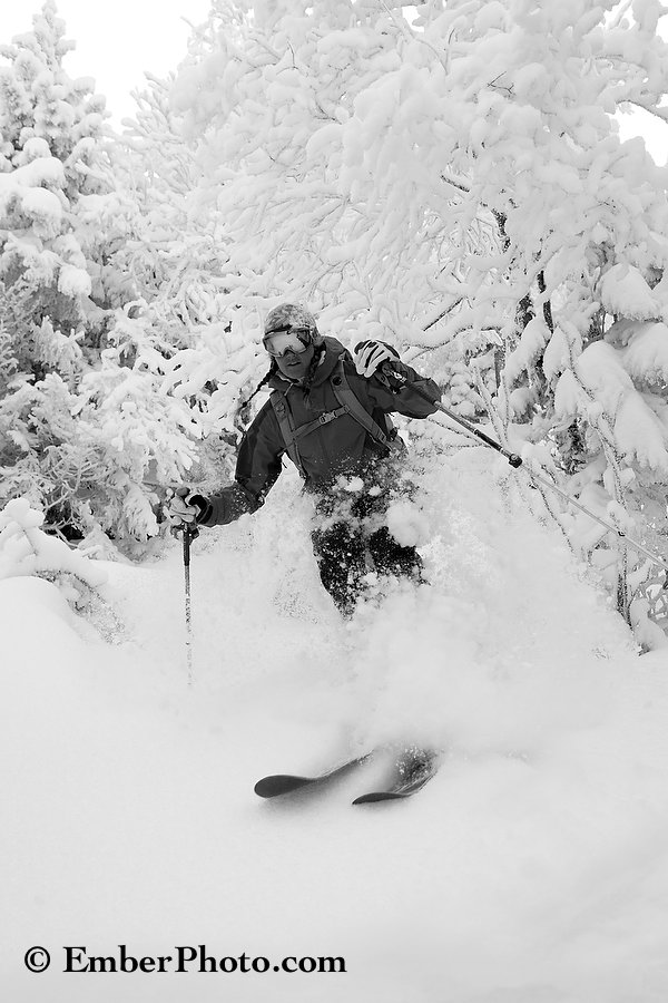 Thanks CJ! Emily’s usually skiing a 143cm Icelantic Scout (140-105-130mm) when skiing more technical terrain with little base this time of year… as they give her incredible manueverability and control = more fun & safe skiing! Something even wider (approx. 115 mm under foot) than the Scout and perhaps 150cm long, might just be her dream ski for the wild woods of Vermont…