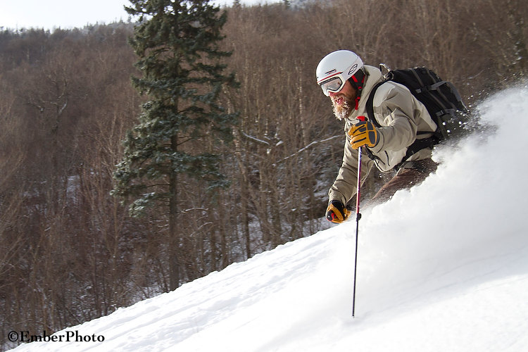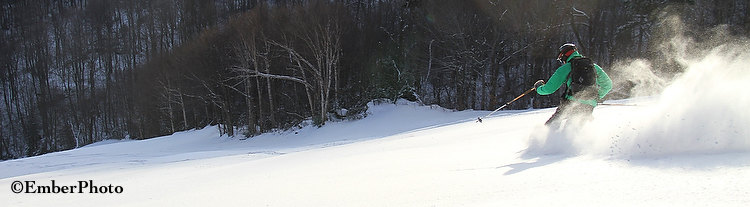 The Christmas Week Storm has delivered one of the greatest gifts imaginable this week, and snow-lovers across the Northeast are making the most of it in so many ways – by building snow forts, by enjoying turns with family and friends, or by sliding into the White Room wherever the terrain is steep and the snow especially deep. The luckiest mountain locales picked up 20+” of snow on Thursday, and the image here illustrates what many of the deepest turns of the day were like. No doubt, it was a great day to have an extra set of goggles in the pack!