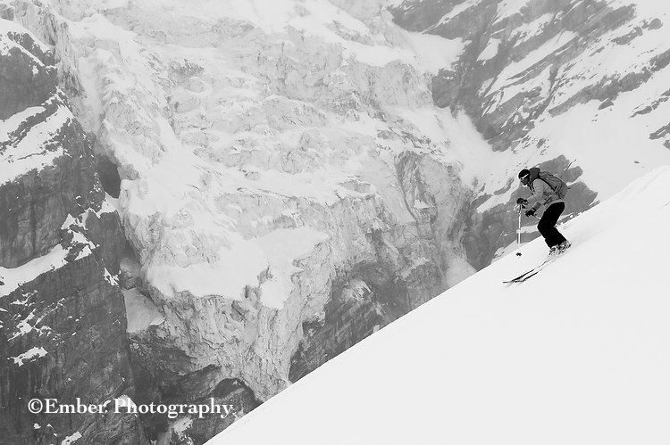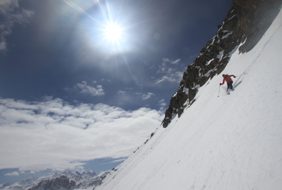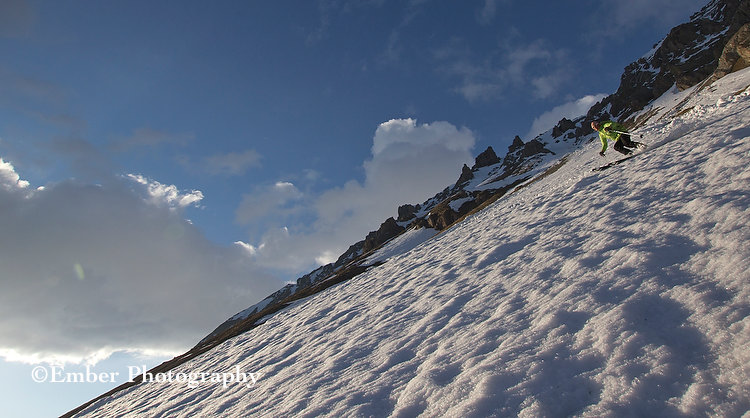 Magically, the weather held, and we stumbled upon some of most beautiful camps and ski tours of the trip on our way back into the heart of the Swiss Alps – via Ofen Pass (Pass di Fuorn). The spring weather also allowed us to enjoy some very tasty corn snow on the warmer, sunny sides of the mountains while the colder aspects took their time shedding April’s fresh snowfall in a truly impressive display of slab and sluff avalanches of all shapes and sizes. Distant rock, ice and serac falls only added to the mountain sound scape under the afternoon sun.
