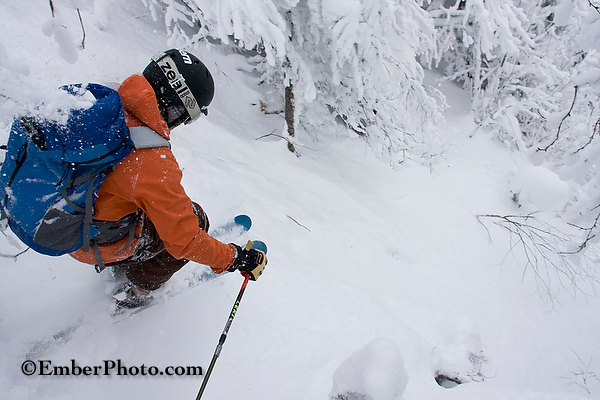 With their ever-widening dimensions, rockered (or early rise) tips and tails, and reduced sidecuts, the latest downhill-oriented ski designs are making it more fun than ever to ski the softer snows of the northeast’s resorts, sidecountry zones and backcountry. An emerging trend this year is the availability of these design features across a wider variety of skis, including many mid-fat and lighter-weight skis. Thus, you don’t need to be lugging around big boots and big skis to enjoy the benefits of the latest and greatest ski technology. The latest skis are also more compatible than ever with both AT (alpine touring/randonee) and telemark bindings (gone are the days of a dedicated telemark or AT ski), with their reinforced binding mount areas, options for inserts and more. In general, there is also a greater variety of ski designs on the market today, than ever. Here’s a short list of the skis we feel are especially well suited to the backcountry-oriented northeastern skier.