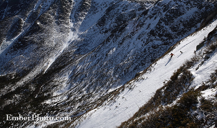 Monday only reinforced our belief that skiing in the rain appeases the weather gods. What started as a potentially sopping wet ski tour gradually developed into a fine late-afternoon of fresh tracks and floating flakes. And this time we weren’t in the southern Andes – where a 2-foot snowfall once commenced just hours after we skied through a deluge alongside mighty Volcan Puyehue; nor were we on a remote island off the coast of East Greenland – where a 7-day streak of blue skies and sunshine set in just hours after we went crawling from our tents in a state of absolute boredom, and went skiing in the grey, sopping rain…