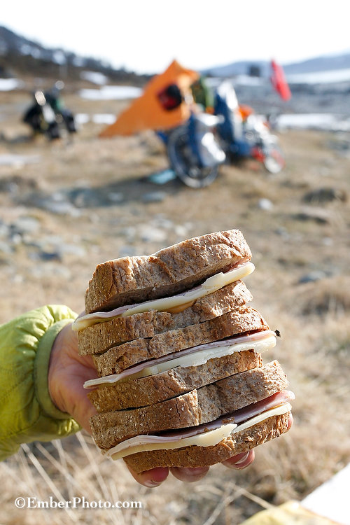 You know you are in for a great adventure – at least you had better be – when you prepare and pack three sandwiches for your ski pack. This particular sandwich making session was followed by a ski tour that kicked off around dinner time, carried us through the midnight hours and didn’t land us back in camp until breakfast time…with half a sandwich to spare. – Brian
