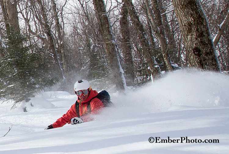 We’re having regular flashbacks to the 2011-12 season here at AdventureSkier headquarters, with this image stirring especially vibrant memories of the season’s biggest dump, which put down up to a few feet of super fluff across the higher elevations of the north country just a couple of days earlier. Those were good days, and good times, with good friends. We captured this image while enjoying a couple of runs with our friend Dave Bouchard in Vermont’s Mad River Valley.