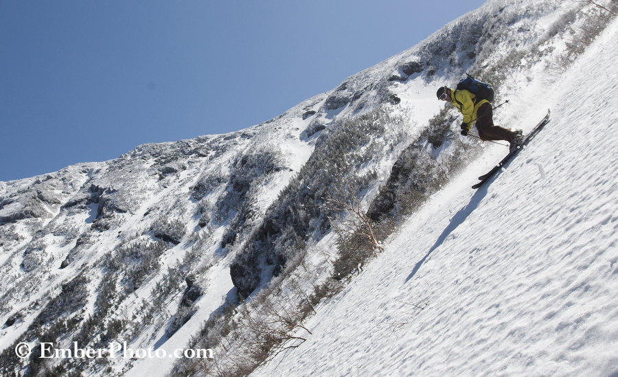 After a rather exciting stretch of unsettled weather brought thunderstorms, flooding rains and mountain snows to the northeast over the last week, the weather gods treated us to one of nicest days of the spring on Friday – aka Earth Day and/or Good Friday. The skies were clear, temps rose into the 50s in the valleys and winds were light. We took advantage of this weather window while skiing in one of our favorite spots in the northeast. It was a quiet and beautiful day, with winter’s brush strokes coloring the scene at higher elevations, and only the rush of the wind, the trickle of water and the songs of birds filling the air. Indeed, it was a really good Friday. (Click smaller image to enlarge. Skier: Dave Bouchard) – Brian
