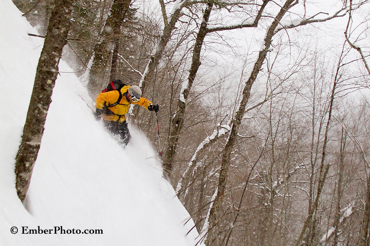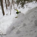 From peak to creek, and thanks to a relatively dense and well-bonded snowpack, much of the steepest terrain we can safely ski here in the northeast is wonderfully skiable right now. Here are a couple of images from the weekend, captured in the wilds of Washington County, Vermont. (Skiers: Justin Beckwith and Ian Forgays)