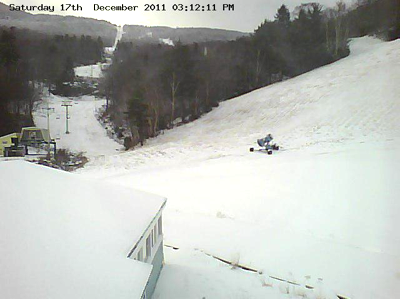 (Note: The image above features one of Mad River Glen’s two hard working snow guns, at work putting down some “back up” snow around the base area.)
