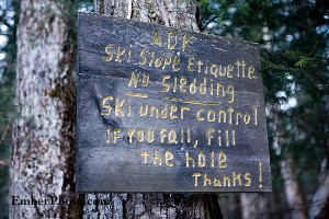 We’re not really sure how old this sign really is, but we thought it was worth sharing with everyone. We recently spotted it while skiing past the old “practice slope” near the Adirondack Loj trailhead in New York’s High Peaks region. – Brian