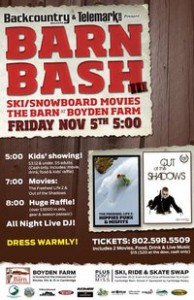 Don’t miss the upcoming Barn Bash, a great party, film showing, raffle and dance party – brought to you by our friends at Backcountry Magazine, on Friday, Nov. 5 from 6-10pm in Cambridge, VT.