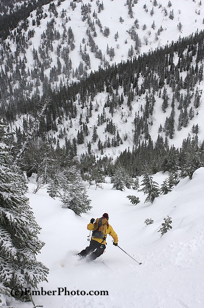 It was late March, somewhere in the western Monts Chic Chocs on Quebec’s Gaspe Peninsula, not too long after sunrise. After skiing a beautiful run through a spacious spruce-fir forest into the depths of a nearby ravine, a relatively harmless mix of light snow, ice pellets and sleet gave way to the kind of snow skier’s dream of – and the first accumulating snowfall we had seen in days. Several inches of snow piled up as we climbed for another run, and in the span of just a few hours, our world had been transformed into a backcountry skier’s paradise. Although little snow was accumulating down in the ravine, a healthy 6-8″ had fallen up high.